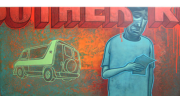 2005 24" x 12" acrylic and collage on board